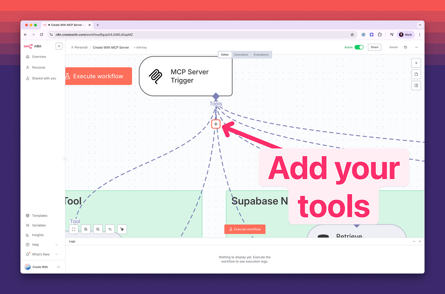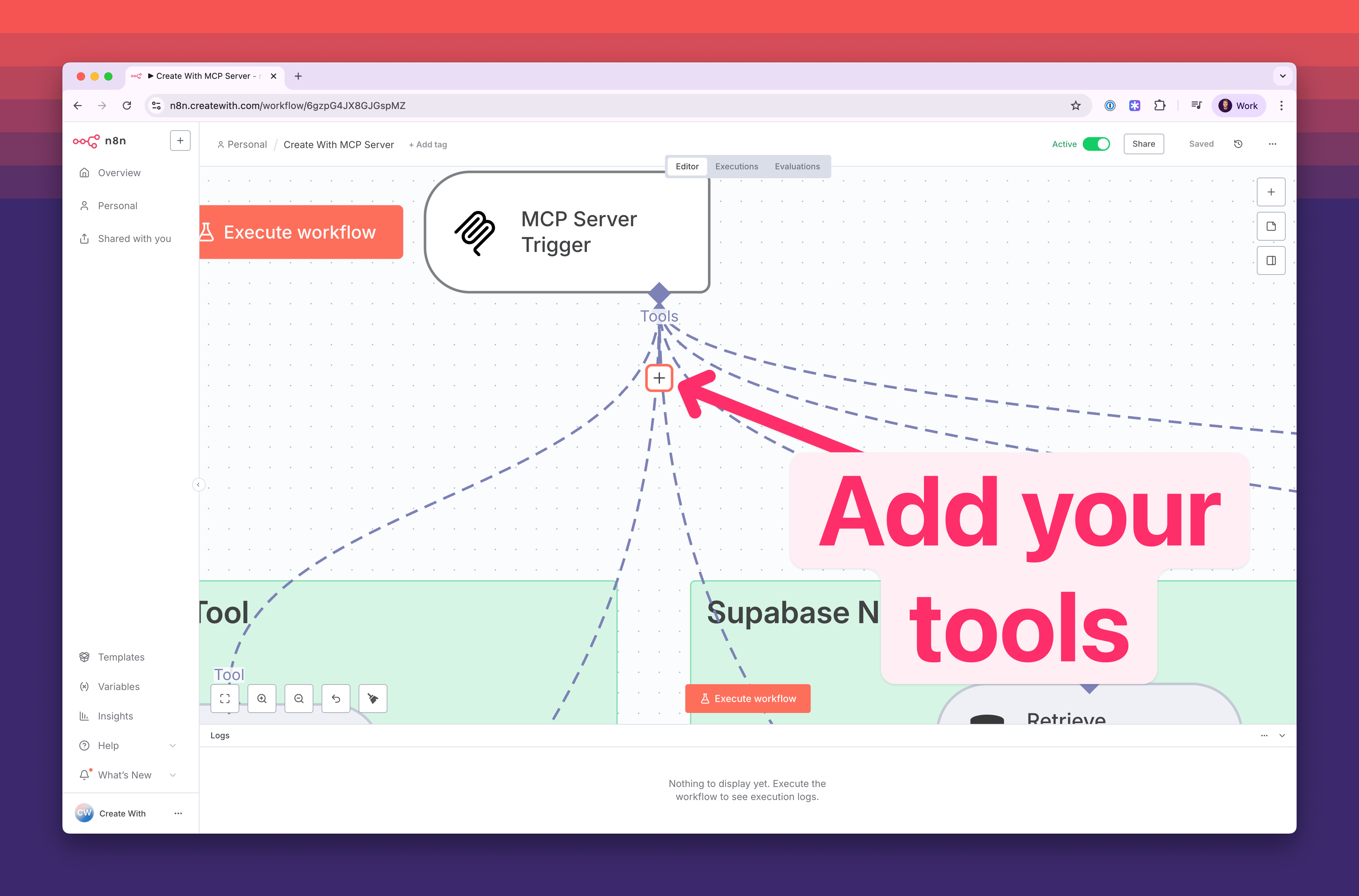 Just add an MCP Client node to any workflow, paste in your MCP server URL, and boom - that workflow now has access to all your MCP tools.