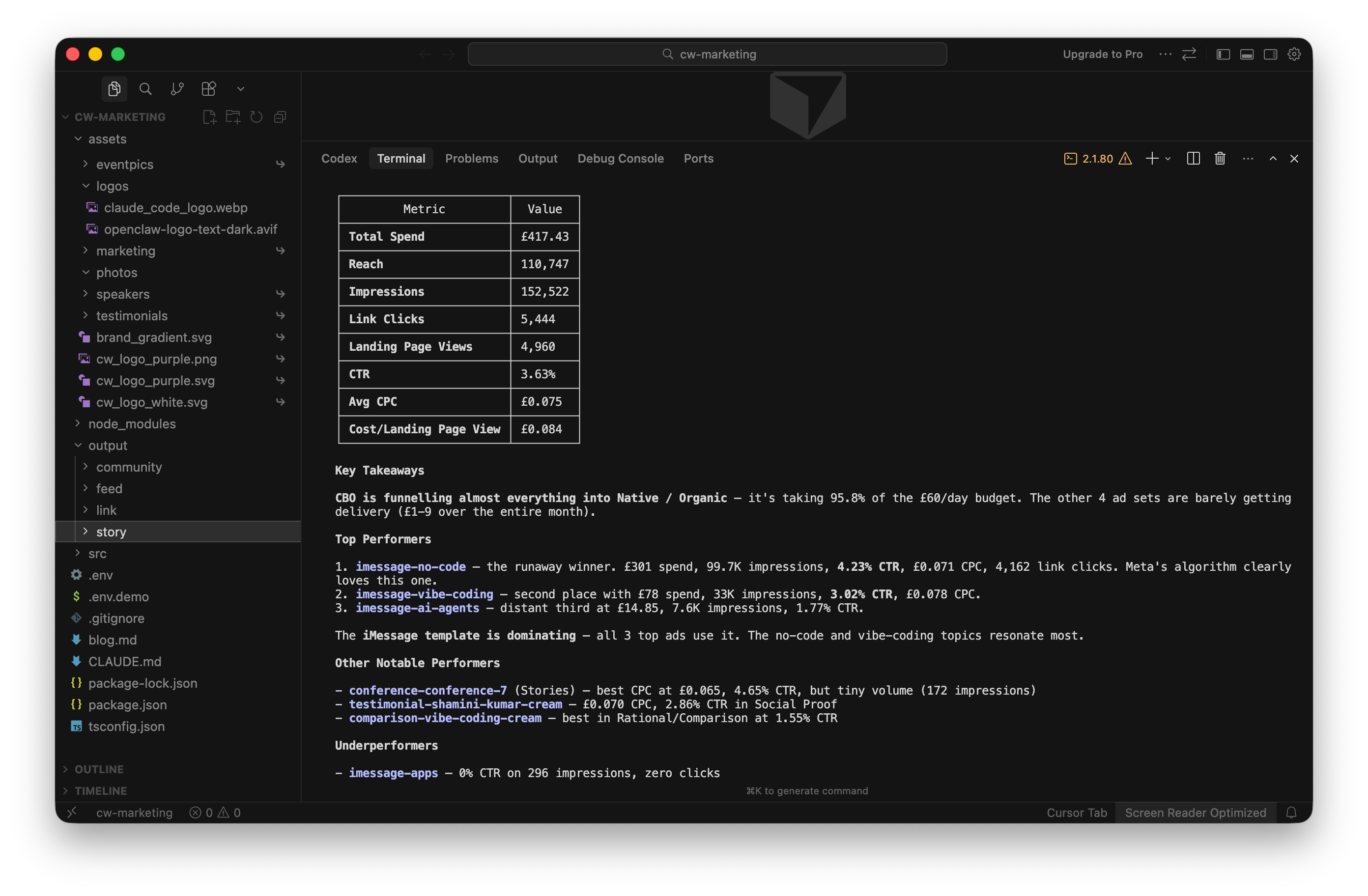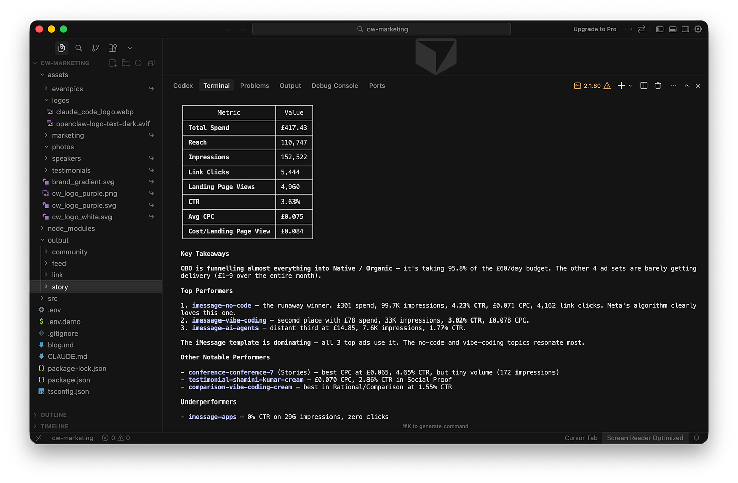 I’m basically never logging into the Meta Ads manager anymore, just chatting in Claude Code on how the campaign is performing, and allowing it to adjust budgets / make optimisations as it goes. It’s been a really fun experience so far.