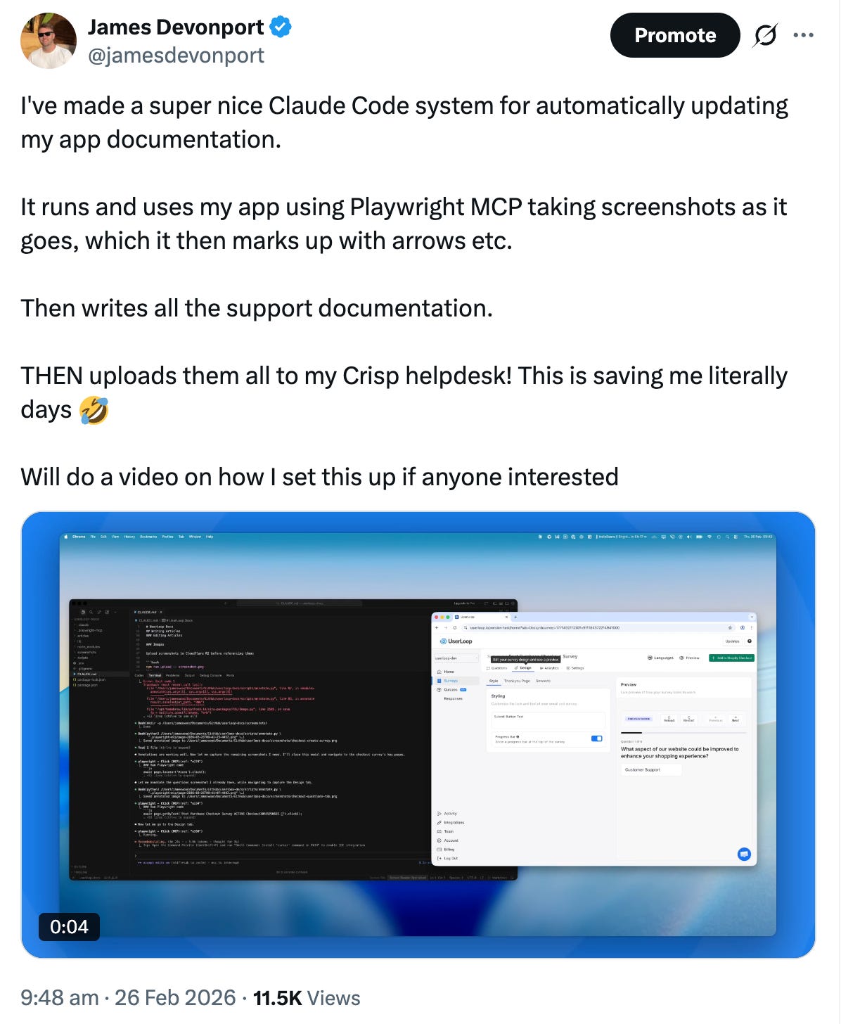 I posted a tweet showing an example of this recently. It’s a small thing but it just shows how much of the day-to-day running of a business you can hand off to AI, manually updating documentation used to take me hours. Now Claude spins up a browser, uses the app, annotates the screenshots and updates my helpdesk for me! I’ll cover this in a future edition.