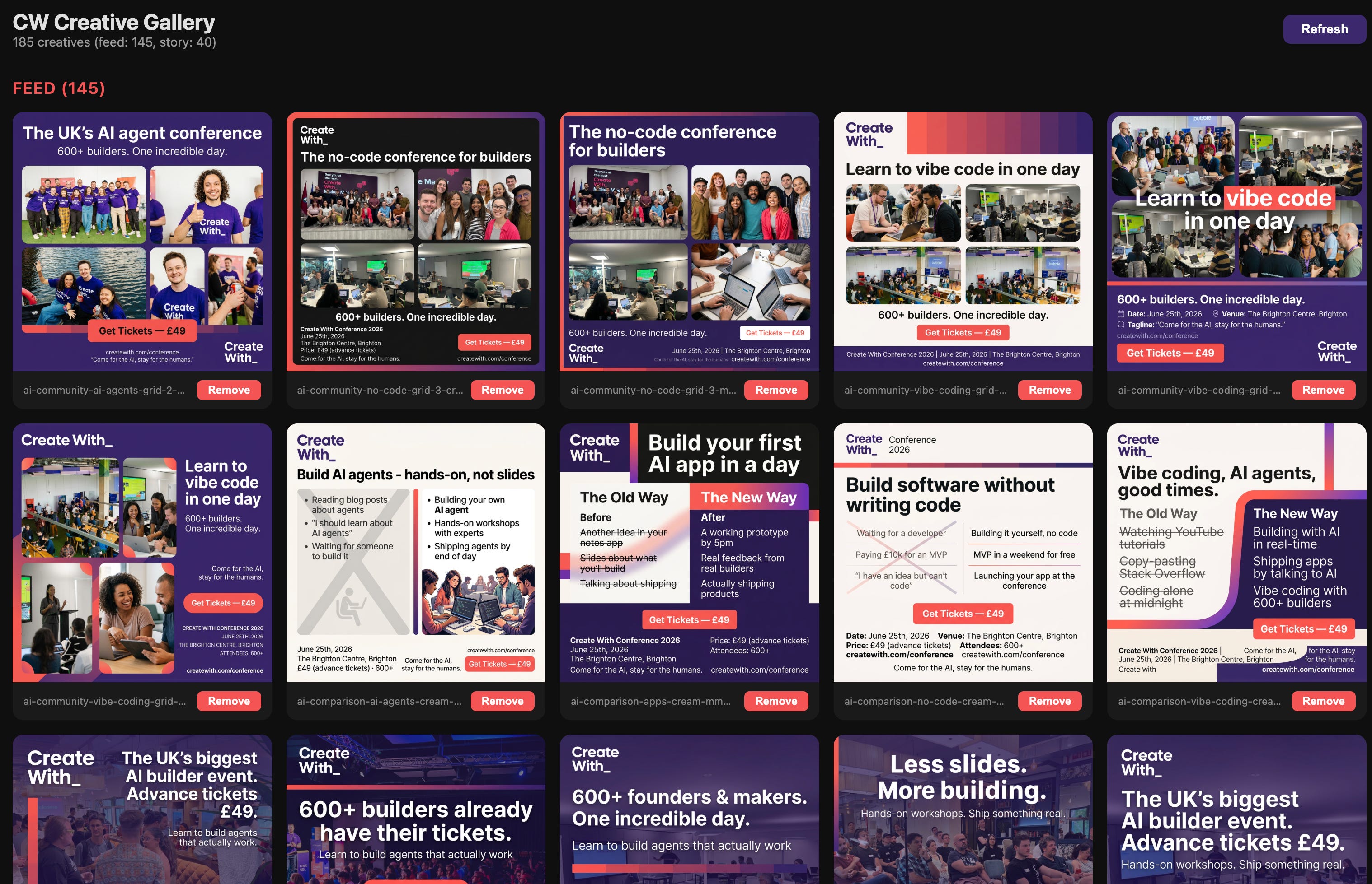 We’re currently running about 200 ads for Create With Conference through this system. The whole thing was built in a weekend.