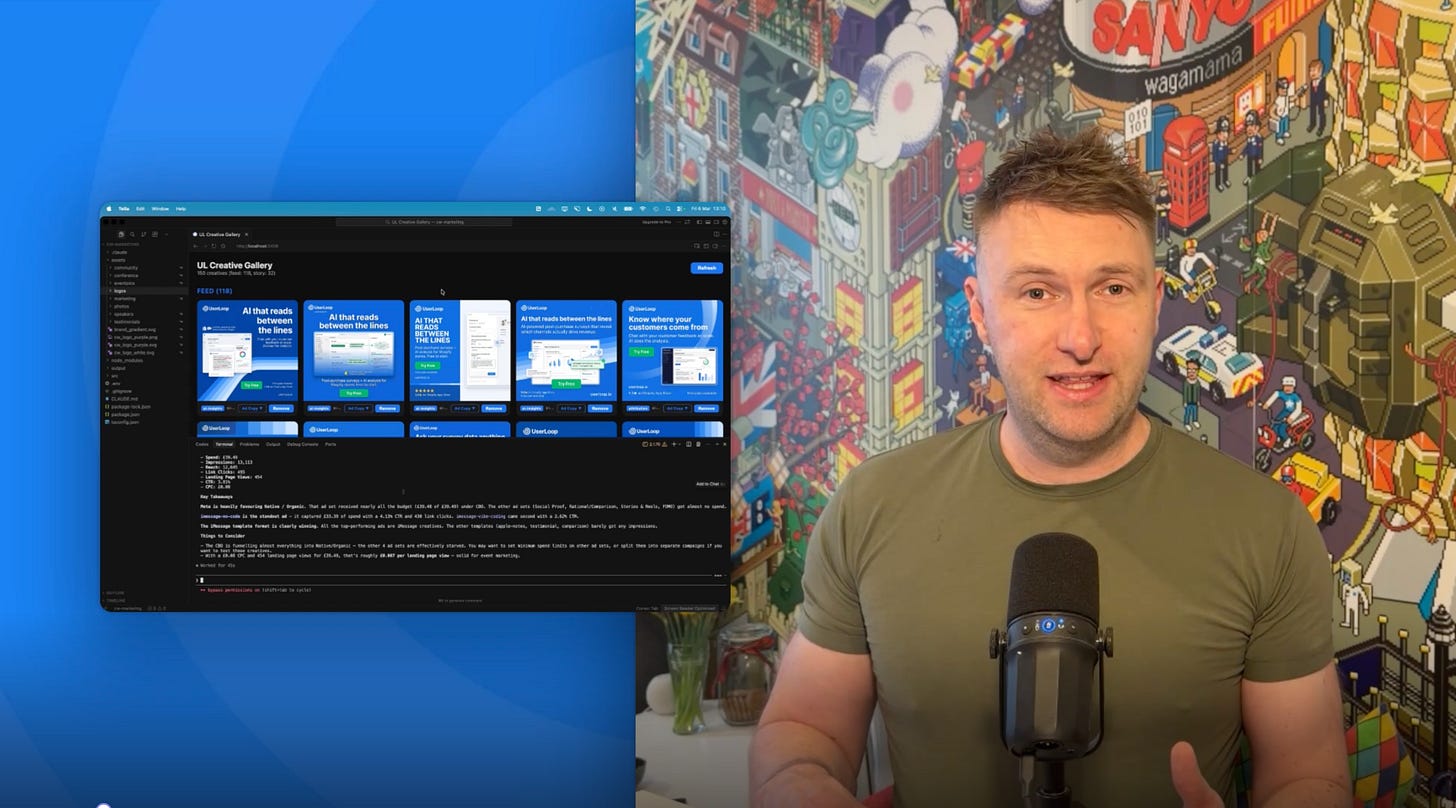 Previously this kind of campaign would have required a designer, a copywriter, and someone managing the Meta Ads account. Now it’s just me and Claude Code.