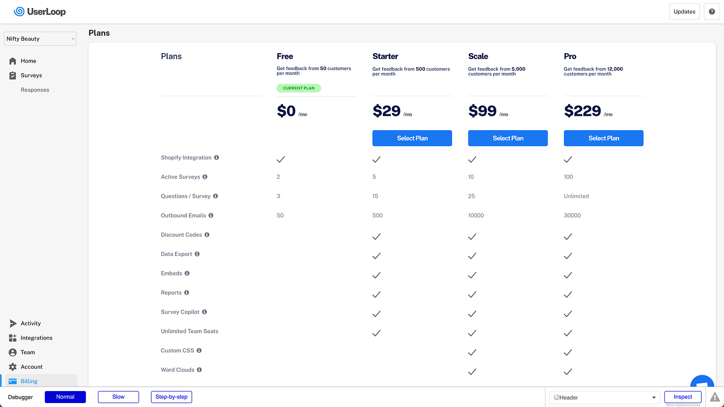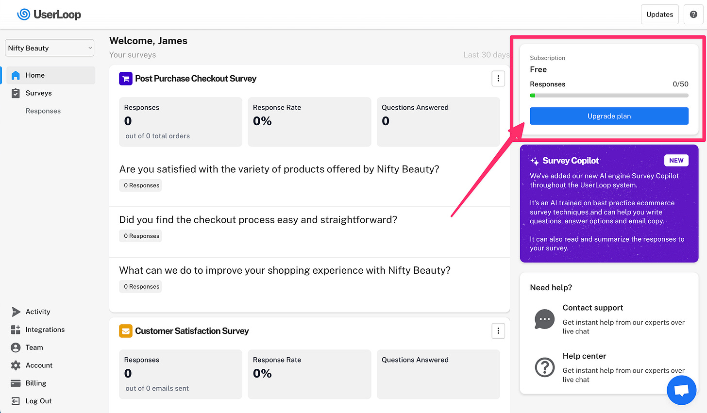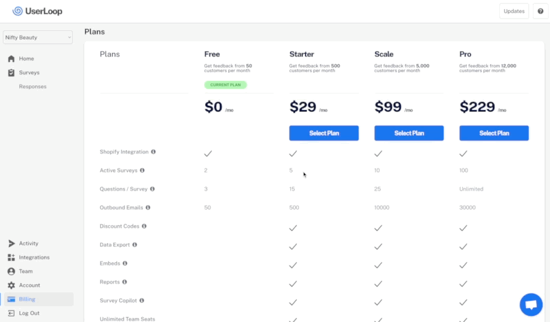 For example, when a user below tries to create a new survey, they’re shown a popup prompting them to upgrade.