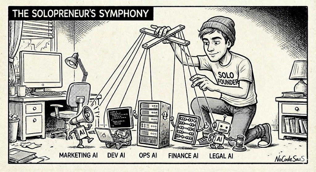 The combination of no-code for visibility, AI for speed, and agents for operations creates a complete business engine that one person can run.