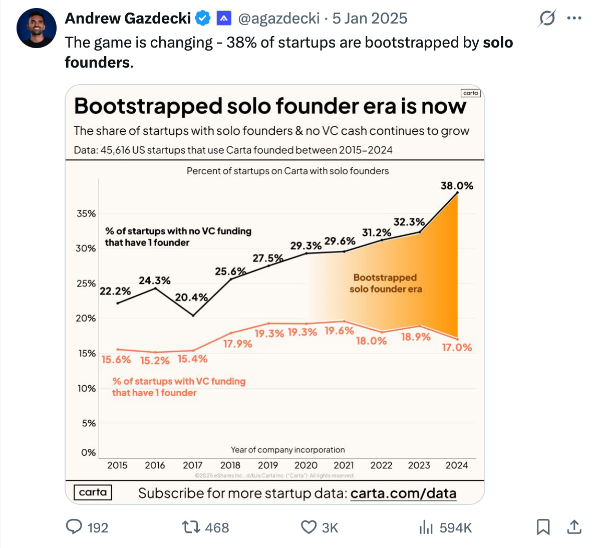 This year I’m going to be focusing on solo founders using AI to orchestrate agents to run a SaaS business as an independent operator. I believe we’re at an inflection point where a single person can build and run software businesses that would have required entire teams just a year ago.